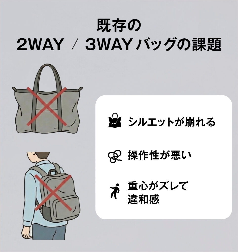 “トートでもリュックでもない、どっちも主役になるバッグ” にできないか?