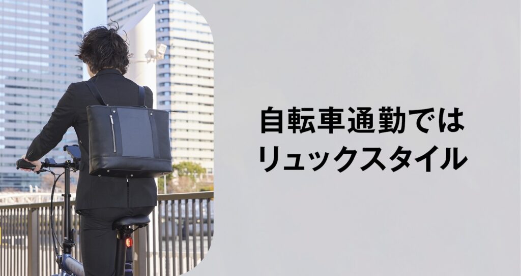 自転車通勤はリュックしか選択肢があなく、会社から取引先など訪問する際はTPOとして課題がありました。トートリュクスは、この問題を解決。営業などではトートバッグとしてビジネス仕様に。